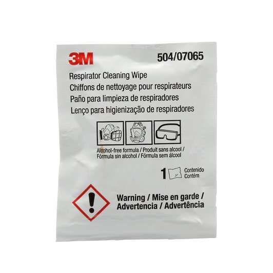 3M Respirator Cleaning Wipe 504 used to clean 3M Elastomeric Facepiece Respirators. Individually packed 8 in x 10 in towelettes are alcohol free and will not damage the facepiece materials.