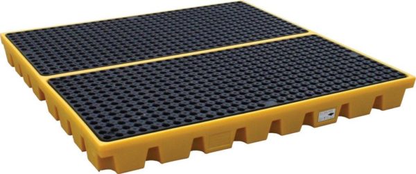 Spill pallet 4-drum workfloor suitable for a liquid dispensing and decanting area within a work shop. 4 Drum workfloor using the roto molding process, so ensure to have strong durability and firm structure. Because of its thicker side border and central heavy duty structure can firmly carry fully loaded oil drums, chemical barrels and other storage containers and equipment.